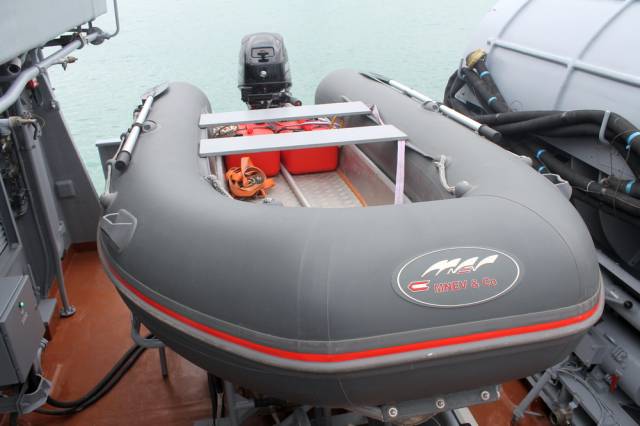 На «Алатау», как рассказал главнокомандующий ВМС ВС РК, установлена 30-миллиметровая шестиствольная артиллерийская установка с дальностью стрельбы до 5000 метров.