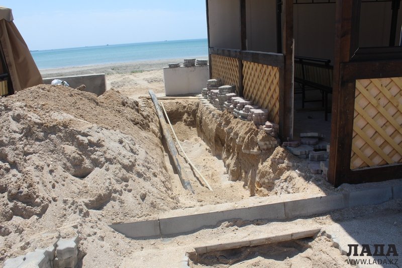 По словам Тилека Кошмаганбетова, работы на набережной ведут владельцы кафе, построенного недавно рядом с пляжем. Они получили в акимате Актау официальное разрешение и ордер на прокладку коммуникаций.