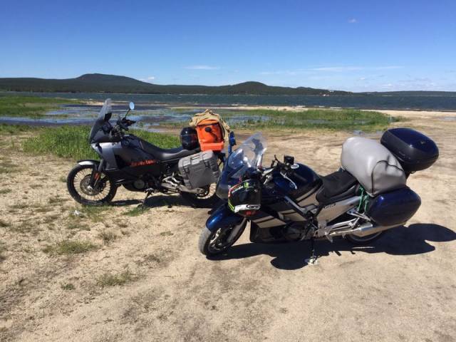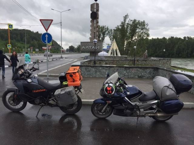 Владимир Кобзев и Сергей Дигтяренко выехали на своих мотоциклах KTM Adventure и Yamaha FJR 1300 из Актау 1-го июня. Маршрут поездки: Актау – Алтай – Чуйский тракт – Байкал – Актау.