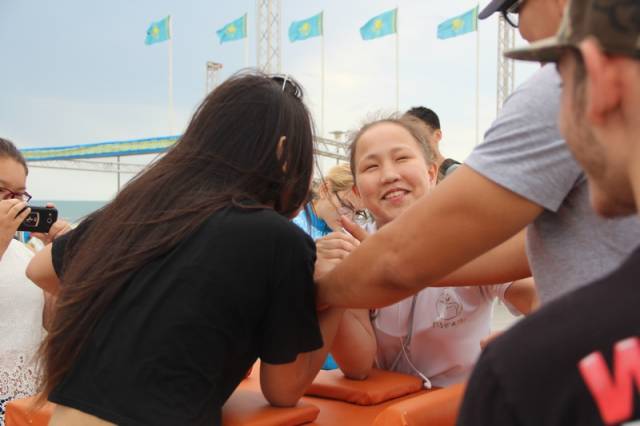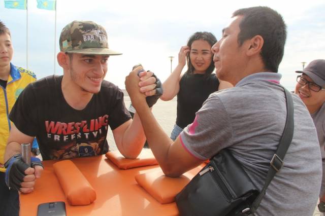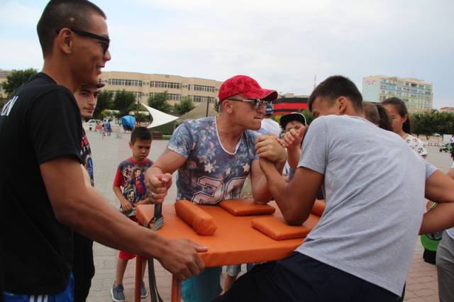 Сегодня, 6 июля, в честь Дня Астаны на набережной 15 микрорайона прошли открытые спортивные турниры. Горожане и гости Актау померились силами в поднятии гирь, армрестлинге и поиграли в асык.