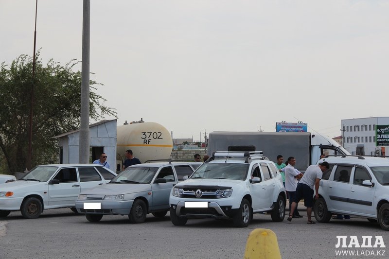 Заправочная станция «Казмунайгаз» в районе СОТ «Химик». Газ есть. За ним очереди.