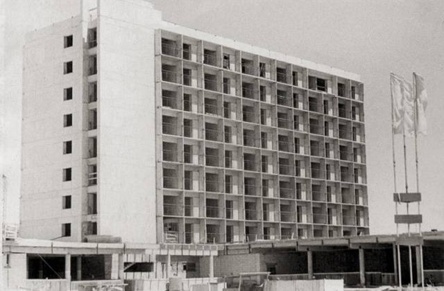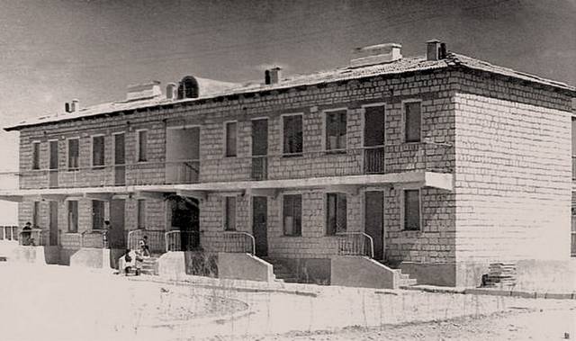 Первыми нормальными дощатыми были 20 брусдомов, доставленными из Сибири, и поставленными в 3 мкр. И только потов в 1961г. Начали строительство каменных домов из ме того ракушечника. Позже возвели ДСК - домостроительных комбинат и пошла серия панельных домов I-464-УМ.