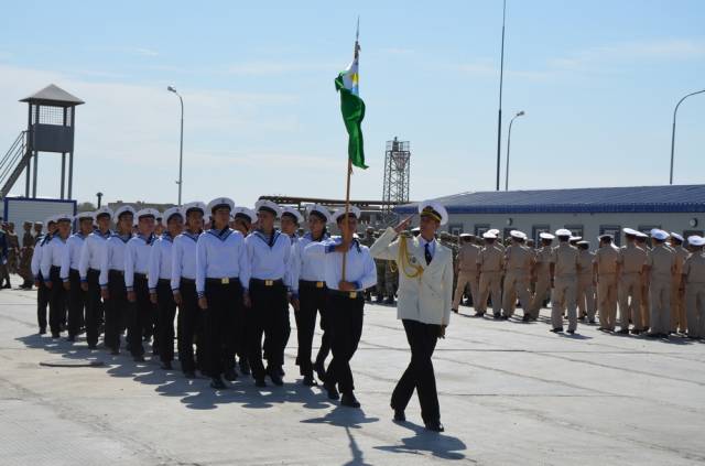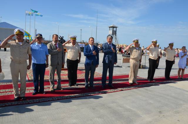 Церемония поднятия флага состоялась на катере проекта «Лашын». Командир катера Арман Абильев, старшина 3 класса.