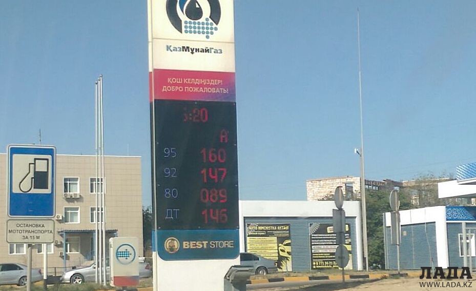 Самая высокая цена по городу наблюдается на заправочной станции АО «КазМунайГаз». Фото автора