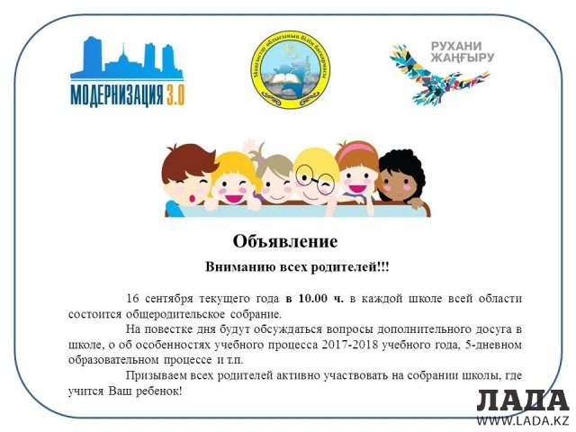 Собрания пройдут во всех школах области 16 сентября в 10:00.