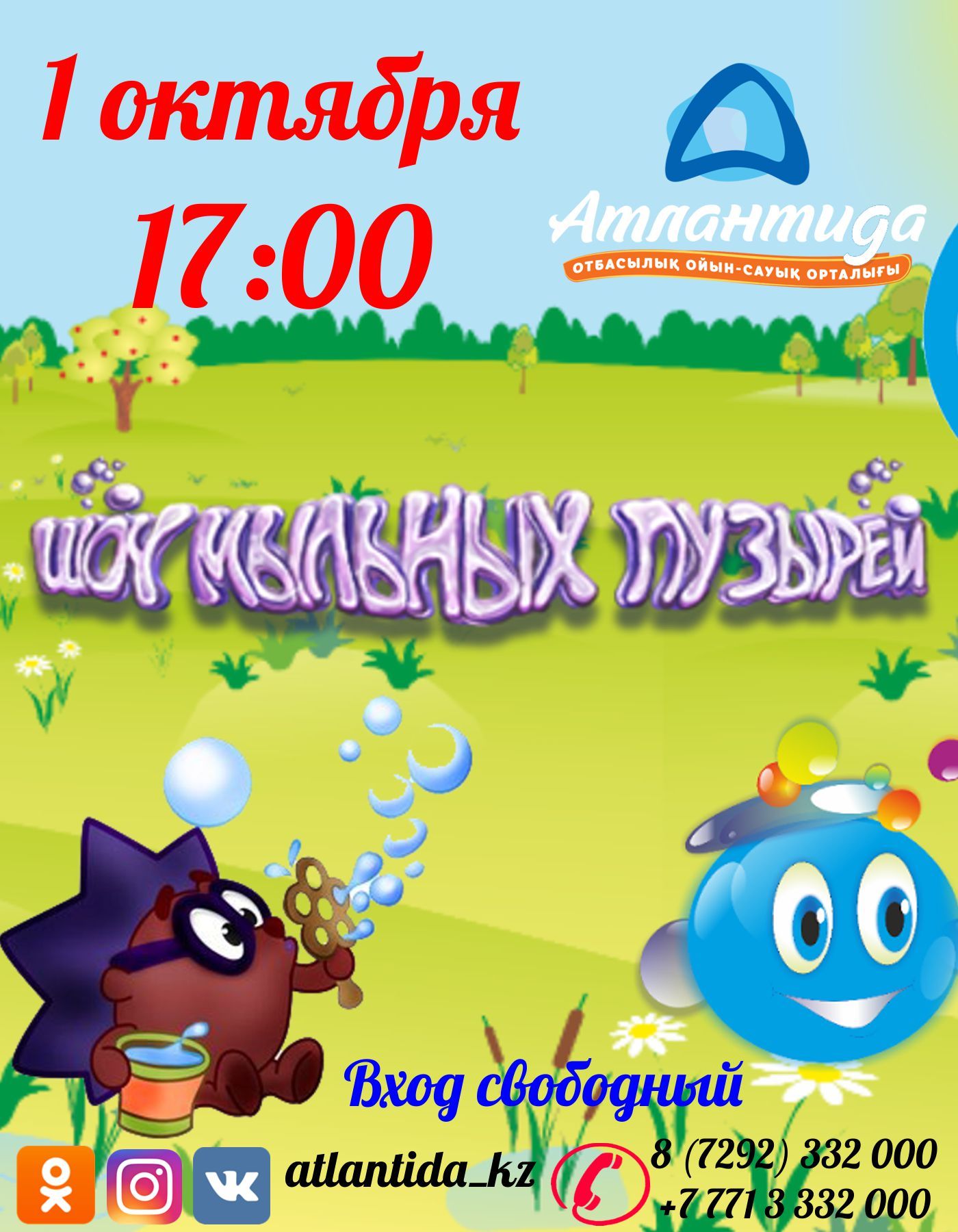 В семейном развлекательном центре «Атлантида» еженедельно в субботу и воскресенье проходят зажигательные шоу-программы с участием веселых аниматоров. Отличное времяпрепровождение для всей семьи. Место проведения: семейный развлекательный центр «Атлантида», расположенный на четвертом этаже универсального торгового центра «Заман». Вход бесплатный.