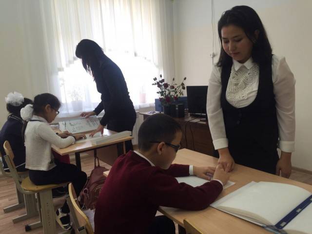 Класс для слепых детей в школе-интернате, по словам Бакшагуль Айтжановой, открыли впервые. До этого здесь обучались лишь ученики с нарушениями зрения и слуха.