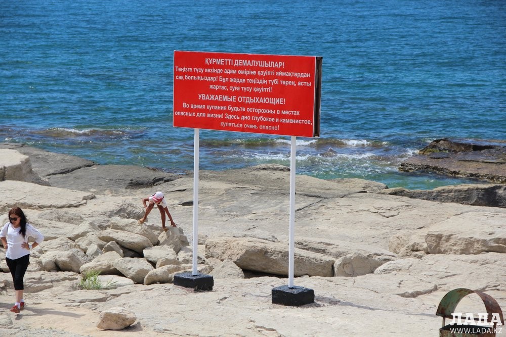 Опасными для купания местами спасатели назвали участок протяженностью четыре с половиной километра от кафе «Айдын» в 15 микрорайоне до кафе «Эсперанза» в 14 микрорайоне. А также отрезок протяженностью три с половиной километра от кафе «Алые паруса» в 7 микрорайоне до торгово-развлекательного комплекса «Дискай» в 1 микрорайоне. Под запретом купание на водосбросном канале ТОО «МАЭК-Казатомпром», именуемом в народе «шора», и излюбленное местным населением побережье в 43 километрах от Актау.