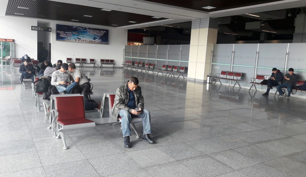 Везде есть залы ожидания регистрации и вылета, и только у нас, в нашем золотом аэропорту хочешь сидеть-плати!