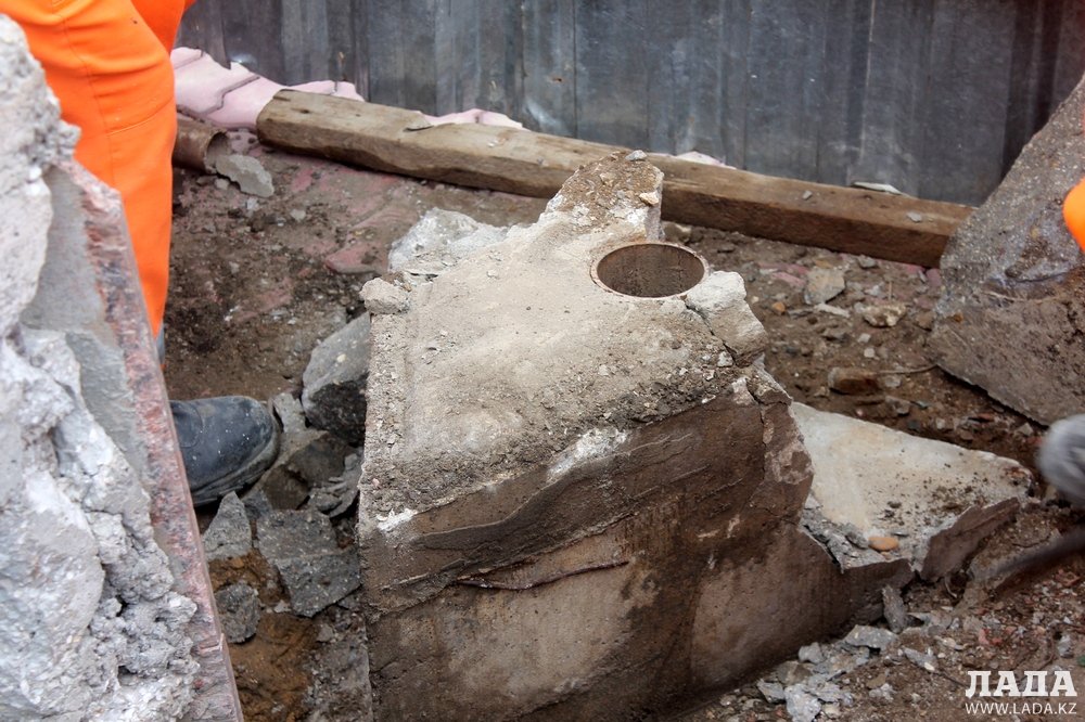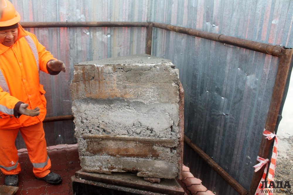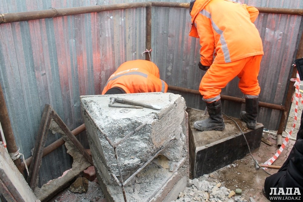 Во второй половине дня сотрудники «Кала жолдары» перфоратором пробурили снятый постамент, но и там ничего не обнаружили. Чтобы выяснить точное местоположение капсулы, они расчистили основание постамента, где находится забетонированная труба.