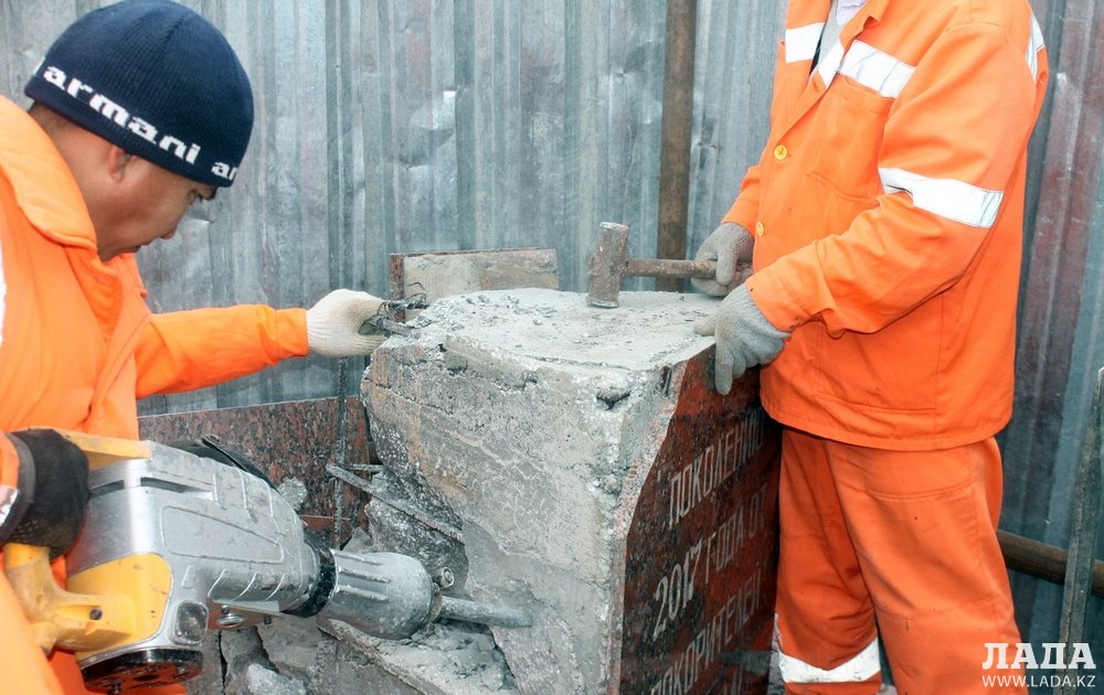 Главная задача, по словам Бисенгали Кенжалиева, состоит в том, чтобы вскрыть постамент и найти капсулу.