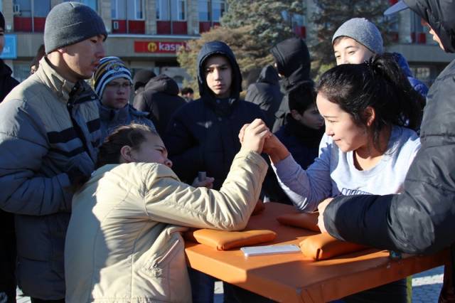 На площади «Астана» прошел праздничный концерт, соревнования по армрестлингу, гиревому спорту и национальным играм. Фото Ольги Ярославской.