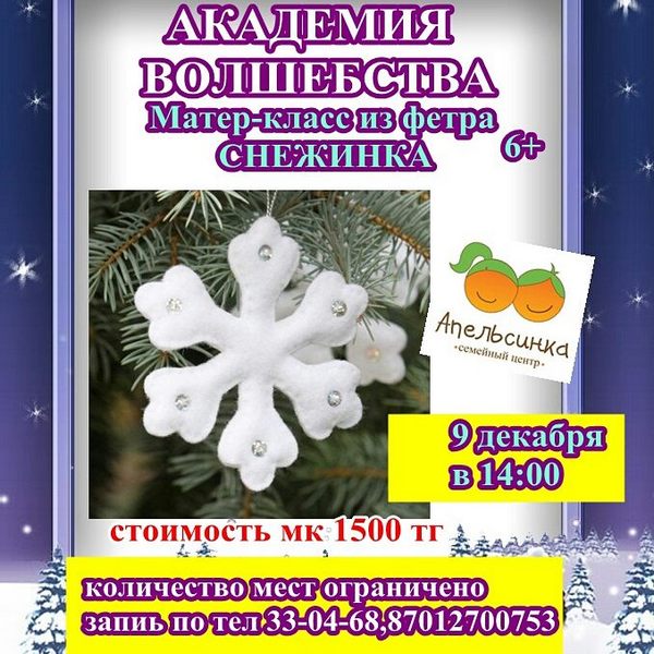 Семейный центр «Апельсинка» в субботу приглашает детей на мастер-классы. Место проведения: детский центр «Апельсинка», 14 микрорайон, 87 дом. Запись по телефонам: 33-04-68, 8 701 270 0753. Вход платный.
