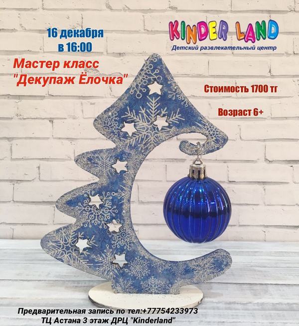В субботу, 16 декабря, в магазине «Три Нити» пройдет мастер-класс «Роспись новогодних игрушек». Начало в 12:00. В этот же день в 16:00 пройдет еще один мастер-класс для детей «Елочка из фетра». Запись по телефонам: 8 708 755 59 63, 8 701 650 26 36. Вход платный.