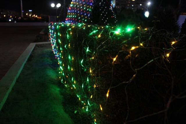 Такие елки возле супермаркетов ставят... опять в рейтинге елок по городам РК будем на дне... а огоньки прикольные на площади. Но елка конечно не айс ни разу