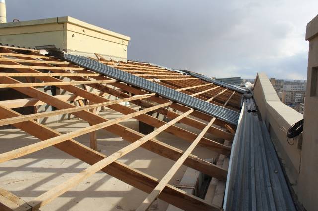 Жители 168 дома в 3 микрорайоне пожаловались на то, что в их доме покрытие крыши колышется из-за сильного ветра.