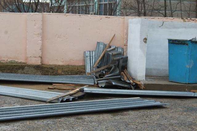 В 23 доме 13 микрорайона убирают последствия ветра. Здесь 25 декабря в 17:10 слетел профнастил с крыши многоквартирного жилого дома.