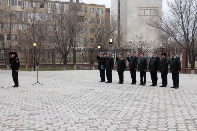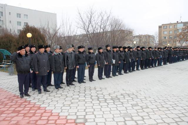 На плацу ДВД Мангистауской области в торжественной обстановке под военный оркестр официально наградили двух сотрудников полиции. Это старший лейтенант полиции Ергали Искаков, командир второй роты батальона дорожно-патрульной полиции МПС УВД Актау, и сержант полиции Ерболат Акимбаев, полицейский второй роты первого взвода батальона дорожно-патрульной полиции МПС УВД Актау.