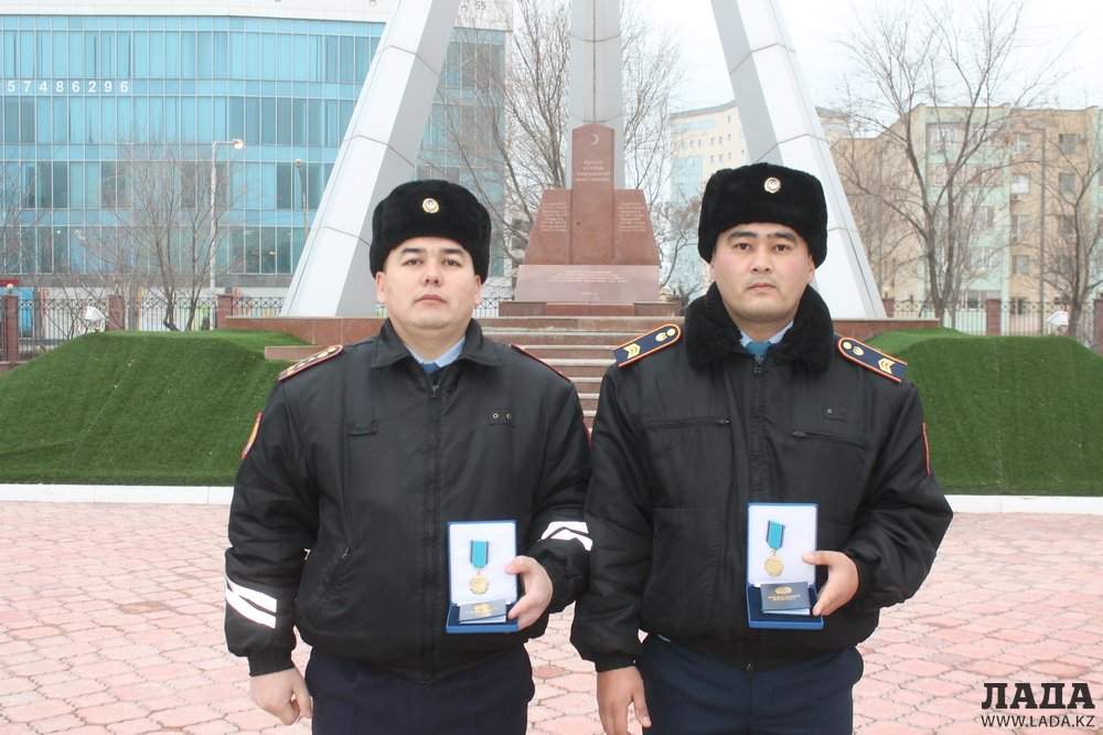 Ергали Искаков и Ерболат Акимабаев проявили героизм во время несения службы 24 февраля 2017 года в районе поселка Приморский. Примерно в 04:00 они заметили пожар в одном из частных домов, не раздумывая сразу бросились на помощь. Из пламени им удалось вызволить двух подростков и их родителей. Женщине с сыном пришлось прыгать со второго этажа. Не дожидаясь приезда скорой помощи, полицейские отвезли семью в больницу.