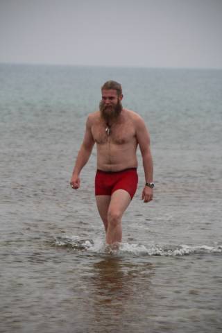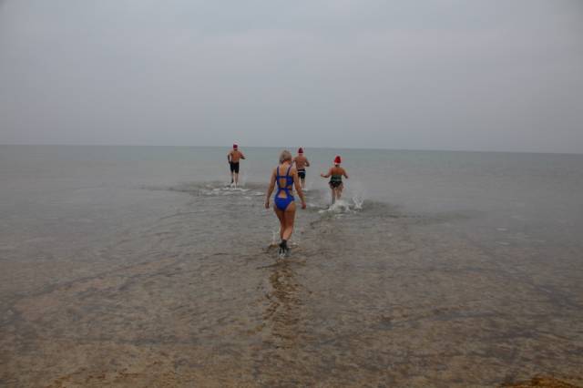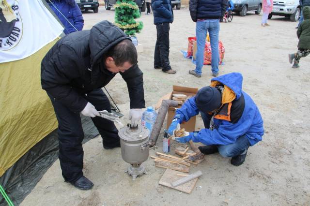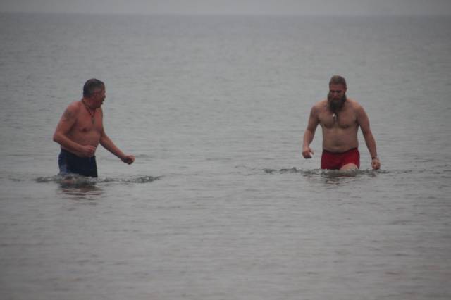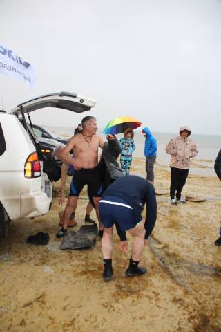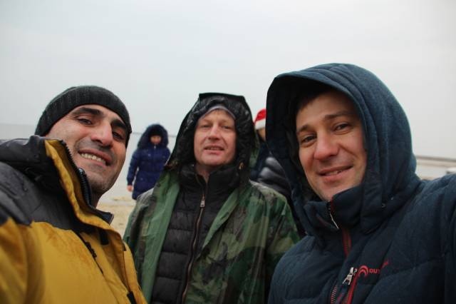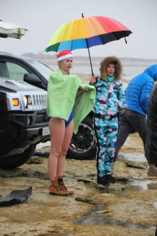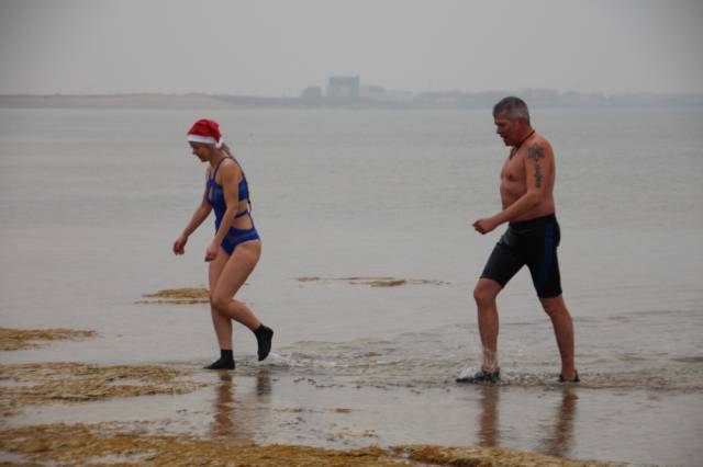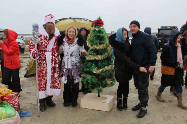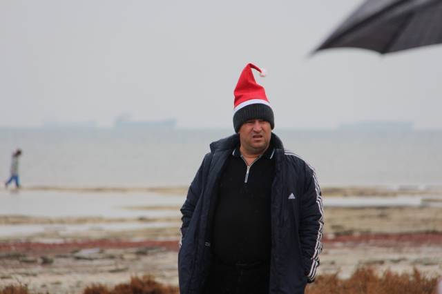 Организаторы празднования установили на побережье елку и угощали гостей чаем из самовара. Все желающие смогли поучаствовать в конкурсах и искупаться в зимнем Каспии.