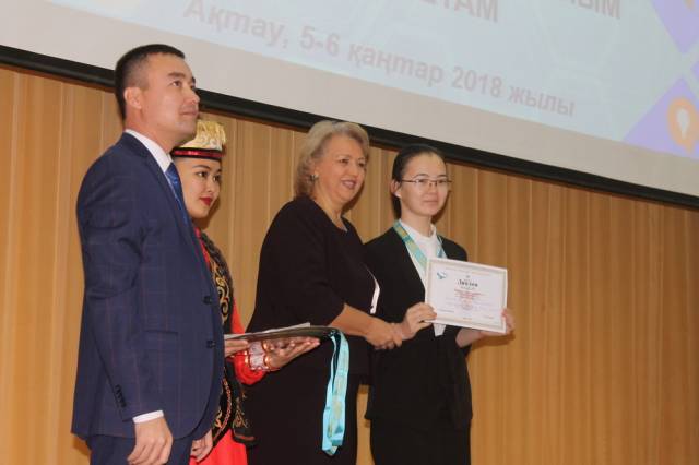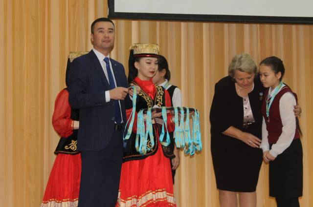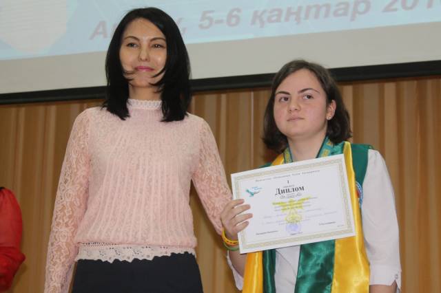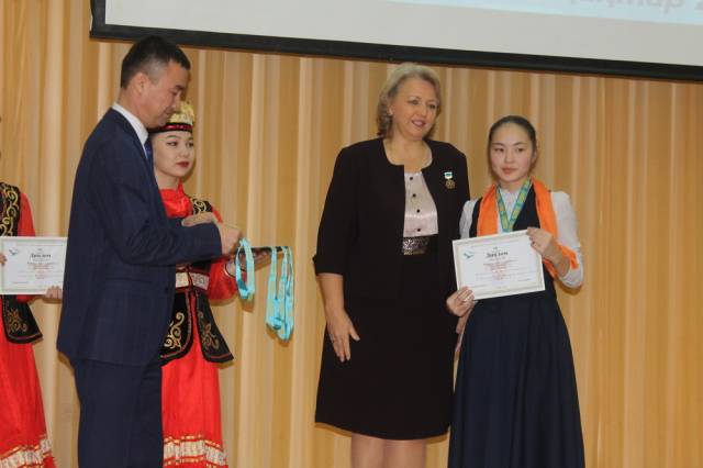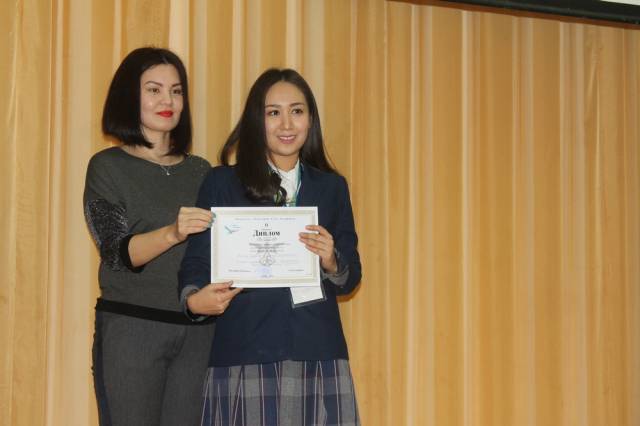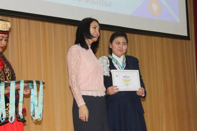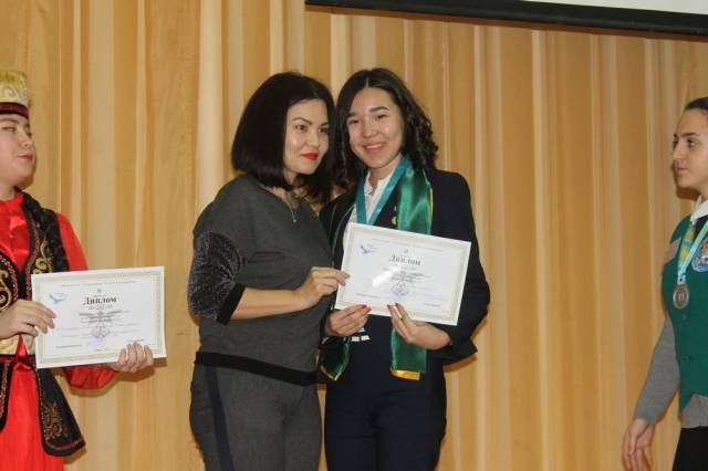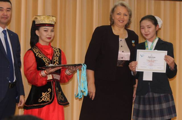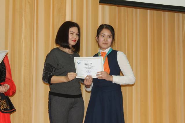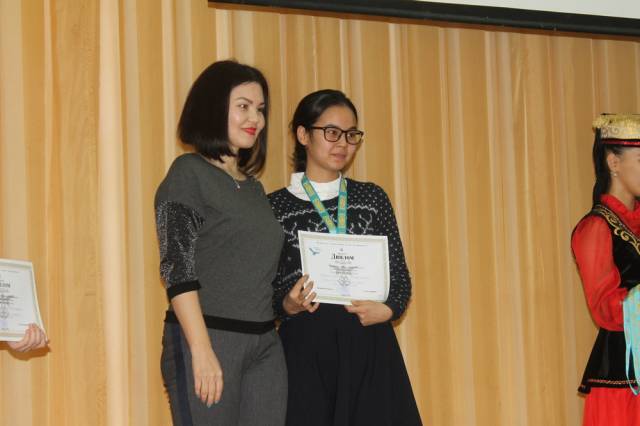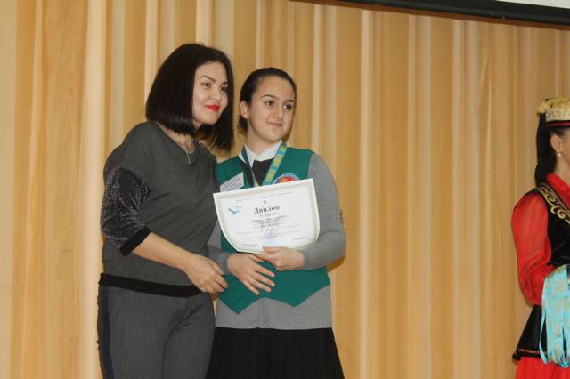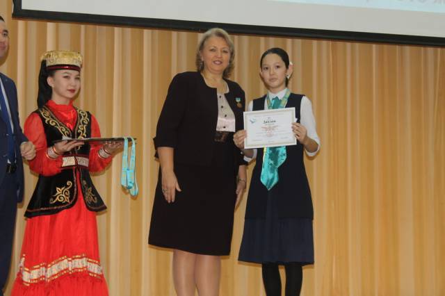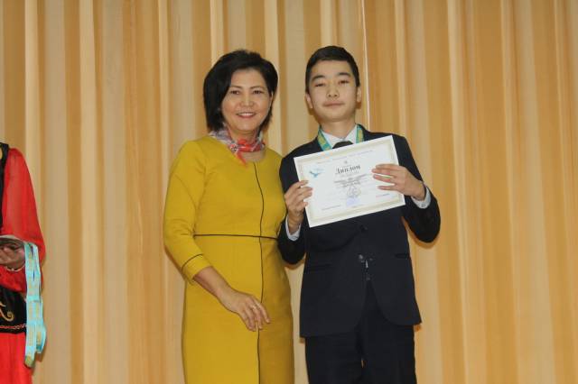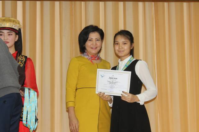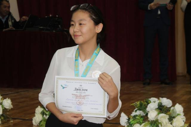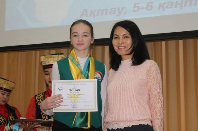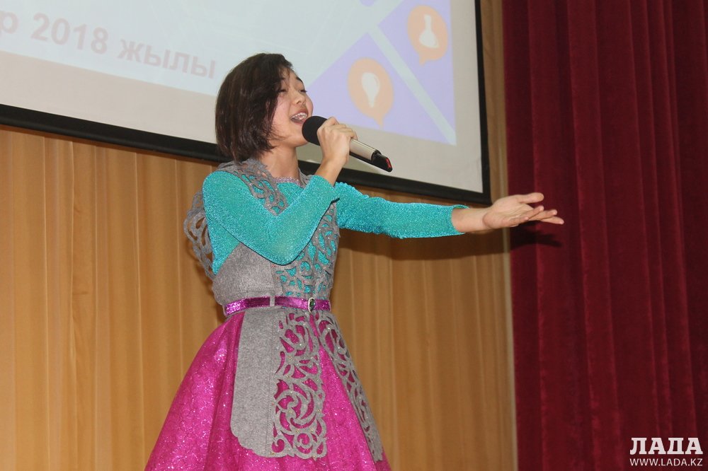В завершение награждения на сцене выступила дипломант второй премии республиканского конкурса «Бала даусы» Карина Шайгузова с песней «Қазақ елі».