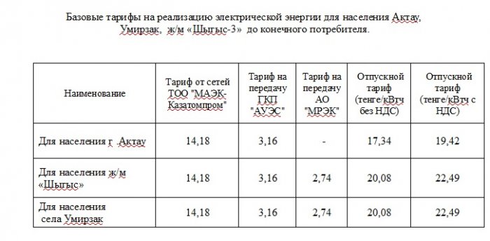 С 1 января тариф на электроэнергию транспортирующая организация ГКП «АУЭС» увеличила на 7 тиын - с 3,09 до 3,16. Отпускной тариф ТОО «МАЭК-Казатомпром» с учетом НДС и тарифа на передачу ГКП «АУЭС» для населения составит 19,42 тенге за кВт/ч.
