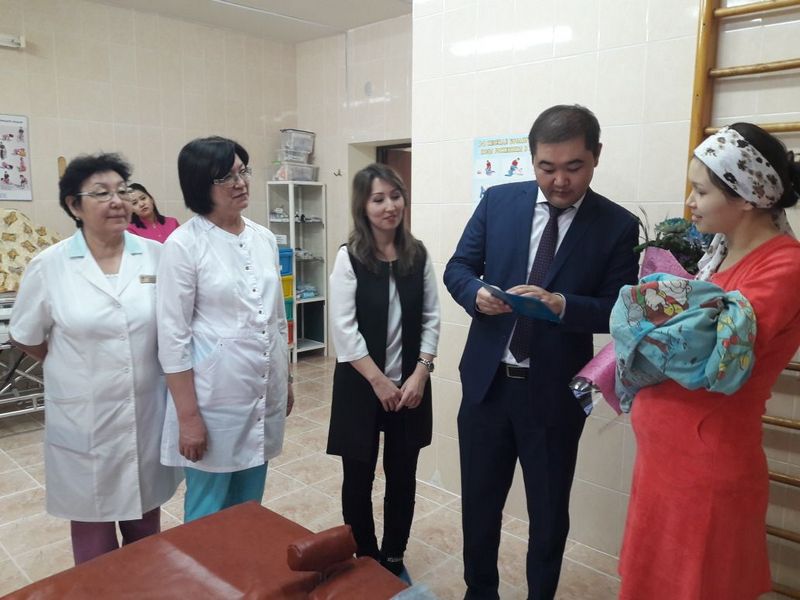 Вручение свидетельства о рождении. Фото предоставили в пресс-службе некоммерческого акционерного общества «Правительство для граждан» Мангистауской области.