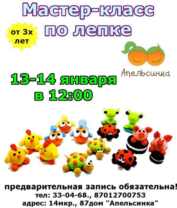 Семейный центр «Апельсинка» приглашает детей на мастер-классы. Место проведения: детский центр «Апельсинка», 14 микрорайон, 87 дом.