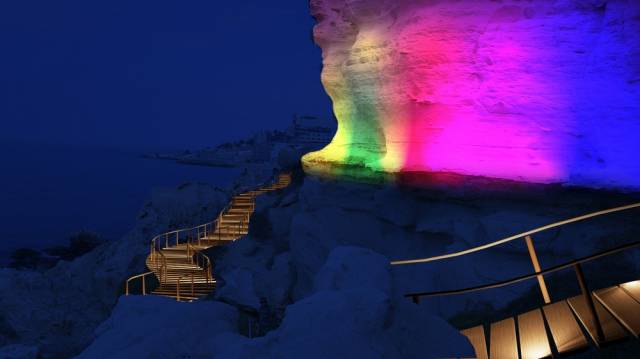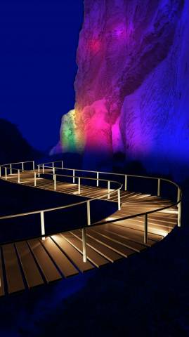 Там по верху скал всегда была тропинка и если строго её придерживаться то проект выполним. Главное реликтовые скалы не испоганить это главное. Подсветка на мой взгляд лучше белая будет красиво и светло,одним словом дело хорошее на мой взгляд.