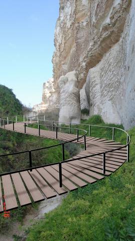 - Поверхность тротуара представляет собой покрытие из композитного материала на основе дерева (ДПК). Состав материала специально разработан для нашего региона с учетом крайне агрессивной среды воздействия. Ввиду особой сложности рельефа тротуар проложен в большей степени между скальными обвалами с целью наиболее гармоничного расположения в естественном природном ландшафте. Сами камни разрушать не будут - тропу впишут в естественный рельеф. По всей протяжённости предусмотрены 24 смотровые площадки с местами отдыха разной площади. В местах повышенной опасности на тротуаре предусмотрены поручни, выполненные из аналогичного ДПК, - рассказал Марат Сюников, представитель проектной компании.