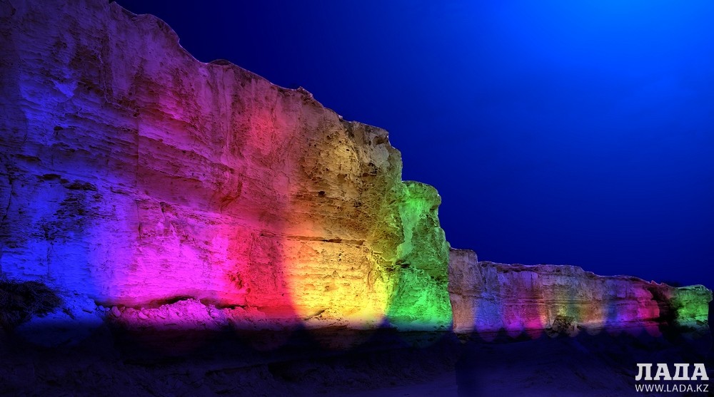 На двух участках скального массива, по проекту, будут проецировать слайды, связанные с историей Мангистау. Срок строительства определён проектом в 12 месяцев.