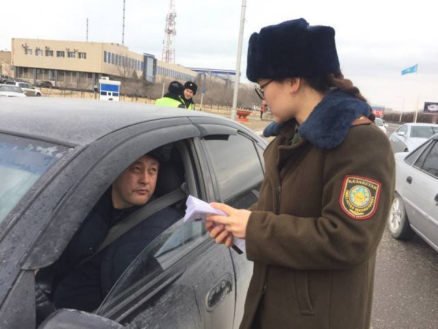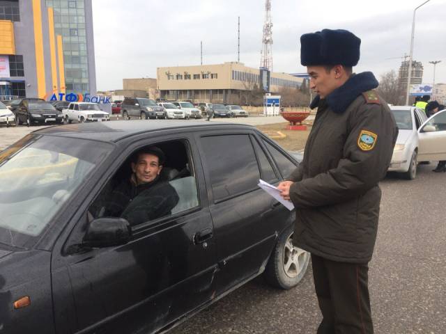 Сотрудники УЧС Актау предупреждают водителей о необходимости соблюдать правила пожарной безопасности