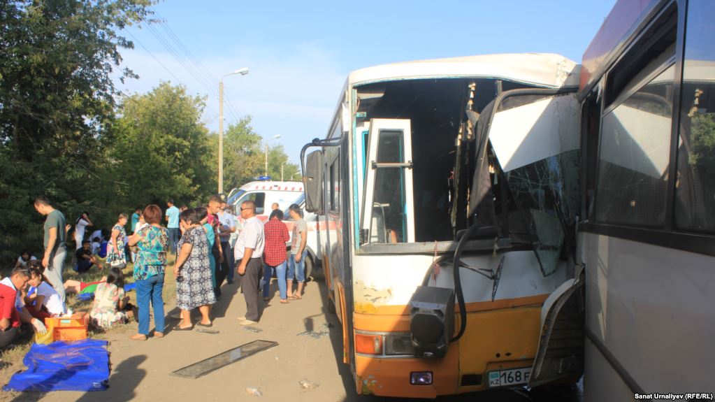 kolesa.kz, перевернулся на трассе Самара-Шымкент. Девять человек погибли, 18 пострадали. Автобус двигался по маршруту Волгоград — Шымкент, а из 52 пассажиров, находившихся в автобусе, было два казахстанца, остальные — граждане Узбекистана. Все погибшие родом из Узбекистана, среди госпитализированных один казахстанец.