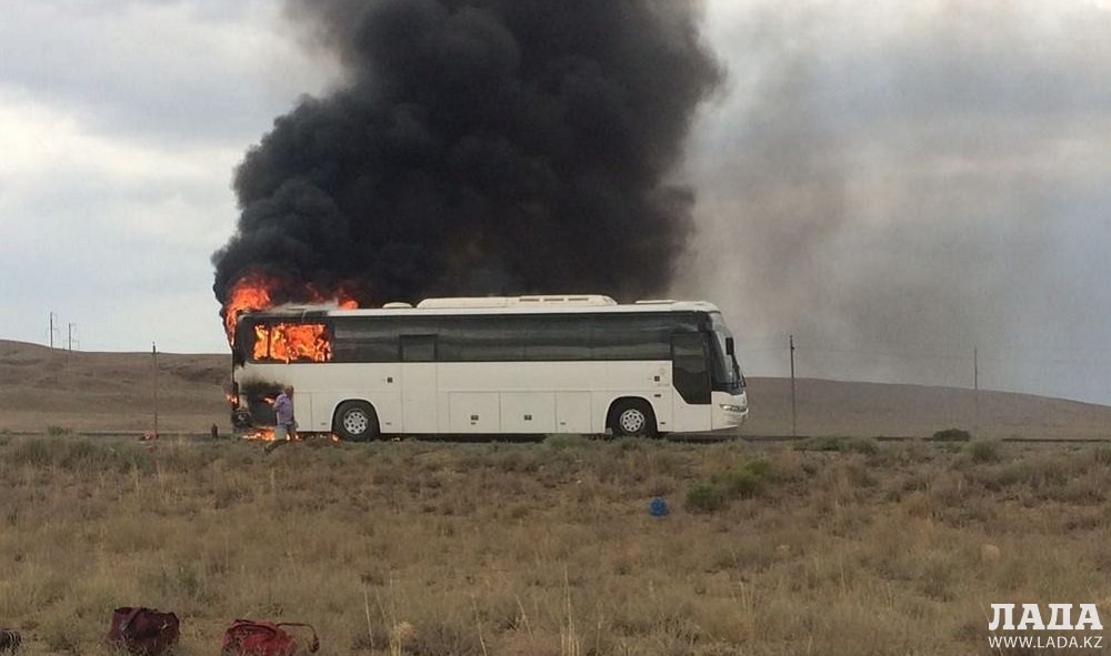 Tengrinews.kz, загорелся автобус, в результате чего погибли 52 человека, пятерым удалось выбраться. ЧП произошло в Иргизском районе на 1068-м километре автодороги Самара - Шымкент, в 10 километрах от поселка Калыбай. Возгорание произошло во время движения. В салоне находились 55 пассажиров и два водителя. Стало известно, что боковая дверь в автобусе была заблокирована, что помешало пассажирам выбраться.