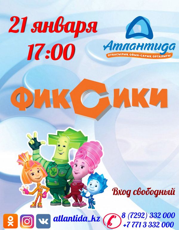В семейном развлекательном центре «Атлантида» еженедельно в субботу и воскресенье проходят зажигательные шоу-программы с участием веселых аниматоров. Отличное времяпрепровождение для всей семьи. Место проведения: семейный развлекательный центр «Атлантида», расположенный на четвертом этаже универсального торгового центра «Заман». Вход бесплатный.