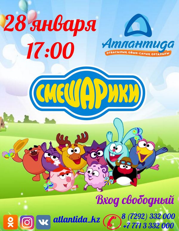 В семейном развлекательном центре «Атлантида» еженедельно в субботу и воскресенье проходят зажигательные шоу-программы с участием веселых аниматоров. Отличное времяпрепровождение для всей семьи. Место проведения: семейный развлекательный центр «Атлантида», расположенный на четвертом этаже универсального торгового центра «Заман». Вход бесплатный.