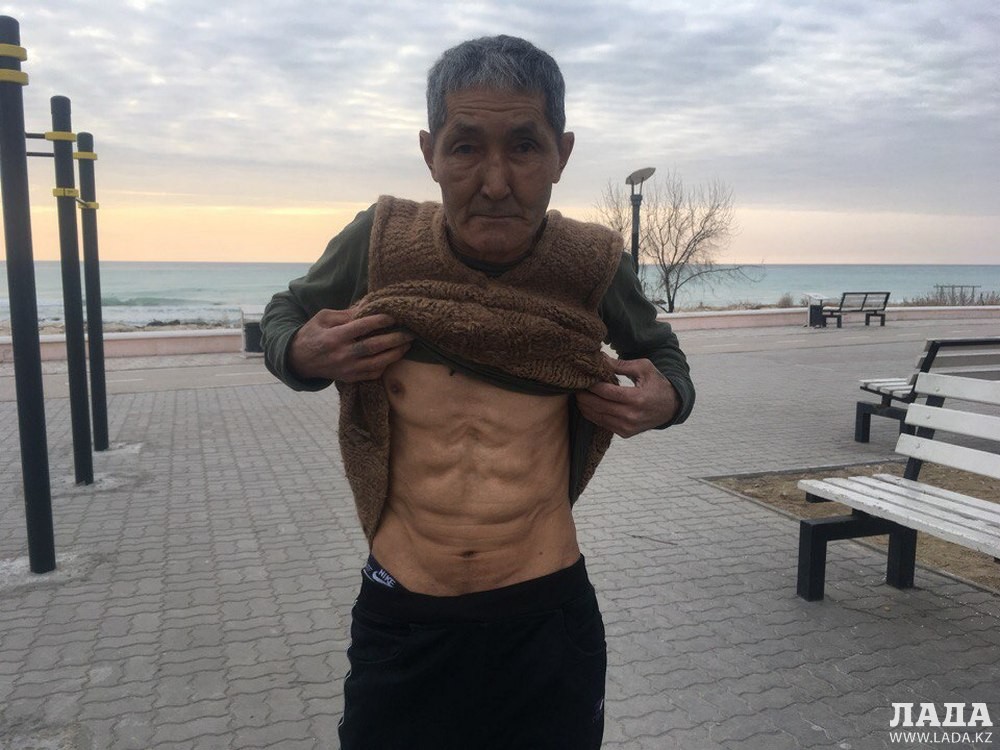 Жексен Аюпов демонстрирует свой пресс. Фото автора