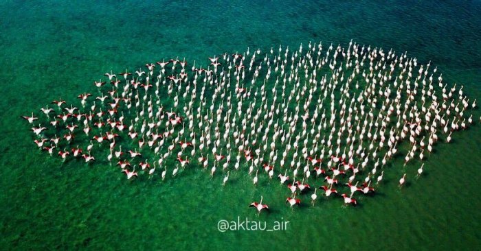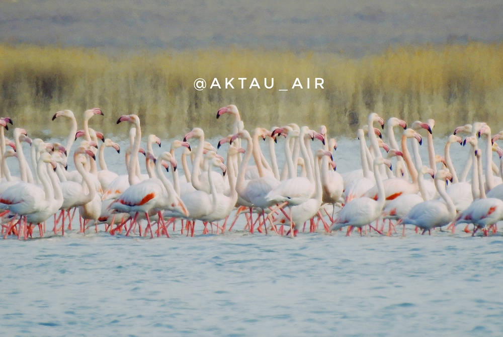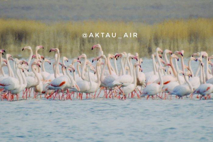 Бейбит Аргынбаев показал в ролике грациозных фламинго, которые ежегодно прилетают на озеро Караколь в пригороде Актау. Видео автор выложил в своем Instagram.