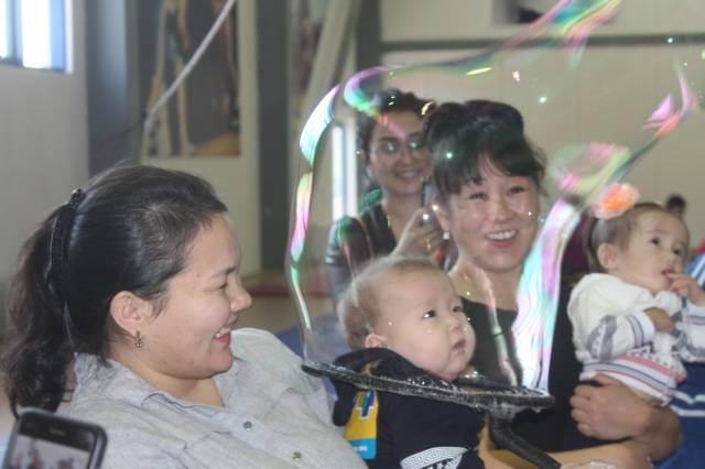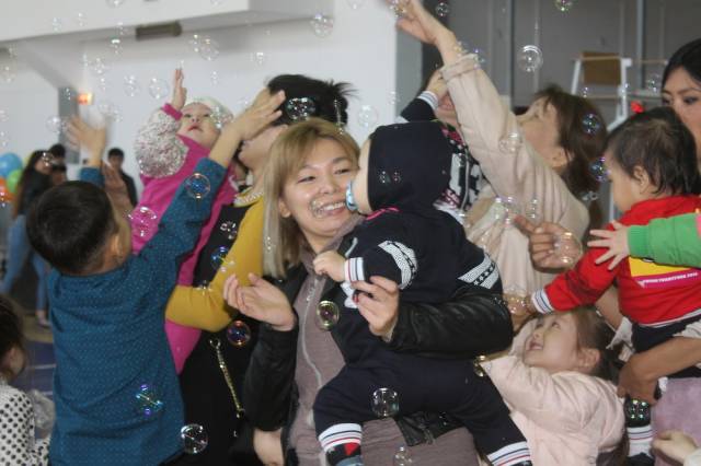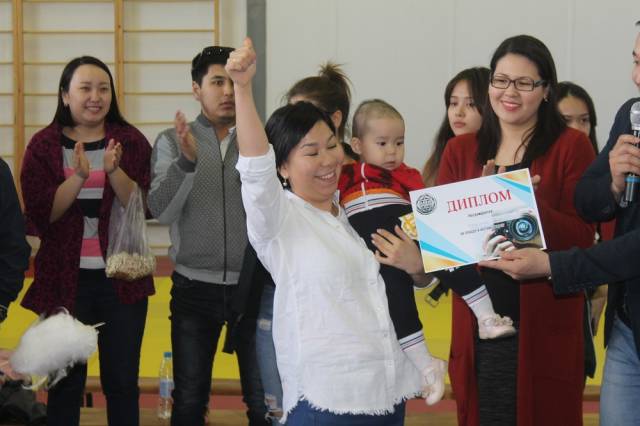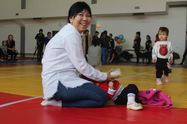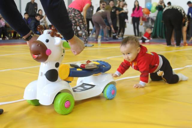 В гонках «топотушек» обладательницей первого места стала Аяжан Жаксылык, которой один год и месяц. Аяжан помогали ее мама и брат с сестрой.