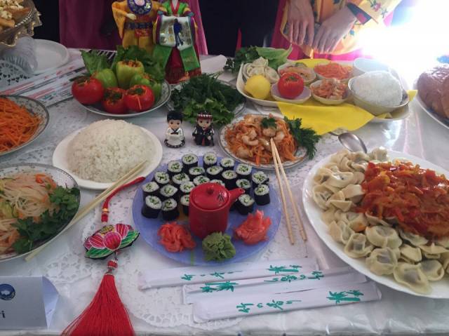 - Рис у нас вместо хлеба. А салаты идут ему в подмогу, как дополнение. Сегодня мы представили блюдо, которое в русской кухне называется пельмени, а у нас манду, а также роллы, которые у корейцев называются кимбап. Обязательно на столе должны быть мясные и рыбные блюда, и зелень. А подается все у нас в круглой посуде, а также в нечетном количестве. Немаловажно на столе наличие воды. Она символизирует здоровье, - говорит Раиса Маденова.