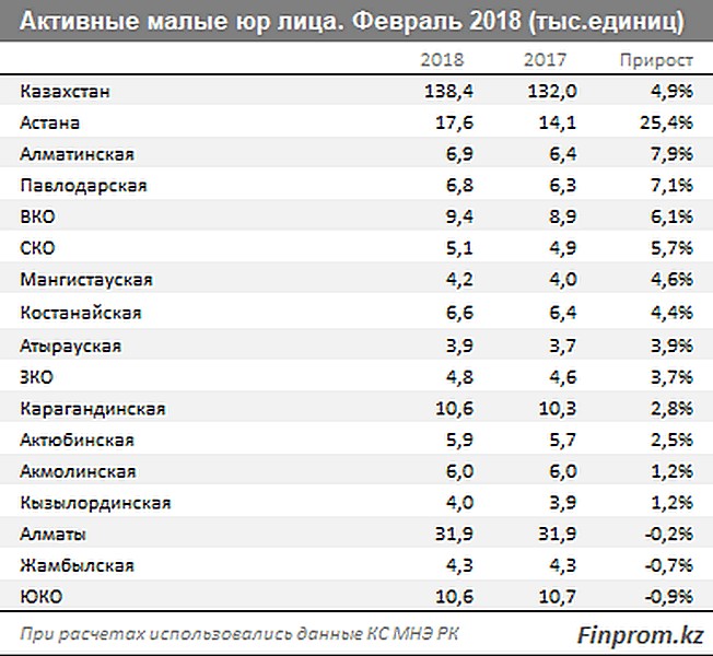 Лидером по числу субъектов малого бизнеса стала Астана. Здесь работают 17600 малых предприятий (+25,4% за год).