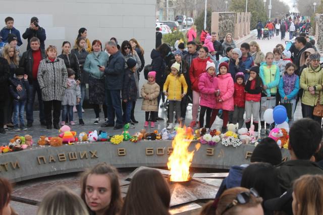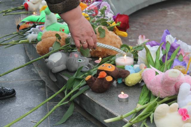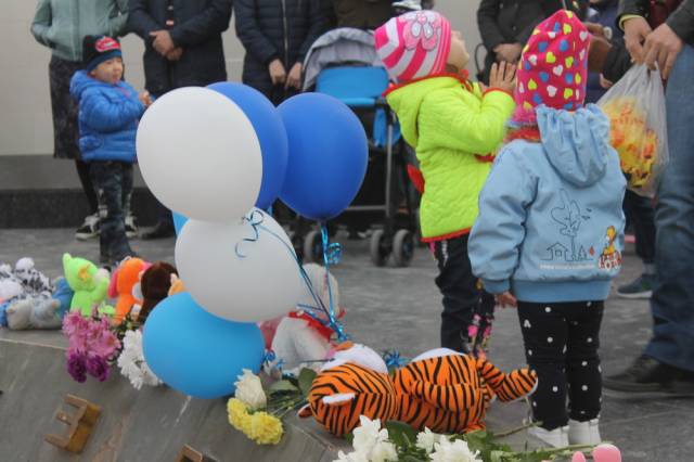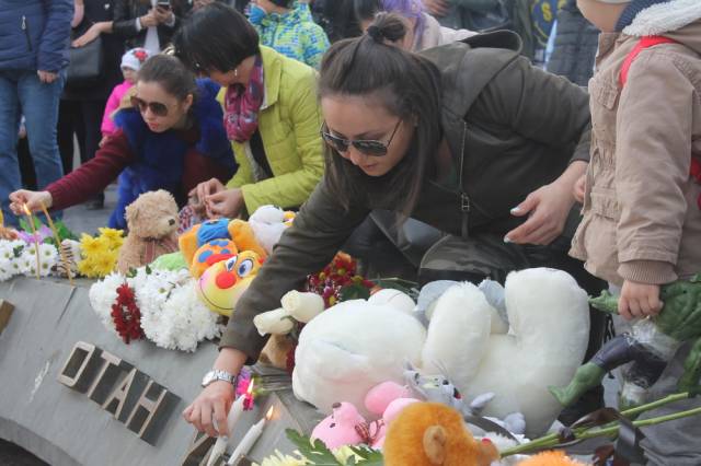 К монументу «Вечный огонь» жители Актау приносили цветы, мягкие игрушки, зажженные свечи, конфеты. Среди пришедших было много детей.