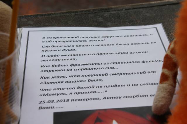 Люди продолжают идти. Таким образом актаусцы выразили соболезнования людям, которые потеряли близких в результате пожара в городе Кемерово.