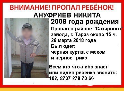 - Действительно ребенок на фотографиях, которые рассылают по социальным сетям, житель нашей области. С ним все в порядке, его нашли еще вчера, - рассказали в пресс-службе ДВД Жамбылской области.