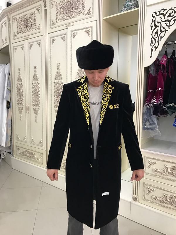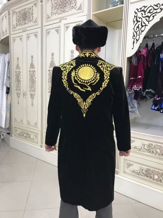 - Чапан сшит сотрудниками дома моды «Нур-Шах». Он изготовлен из велюра, так как на нем узор вышивается красиво. Мы работали с представителем заказчика, их главным требованием было сшить чапан, как удлиненный классический сюртук, с английским воротником, карманами, со строгим казахским узором и изображением в центре солнца с лучами, под которым – парящий орел. Это был индивидуальный и неповторимый заказ, - поделилась Нурджамал Нурпейсова.