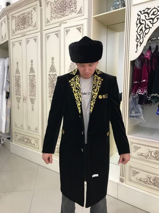 - Это традиционная казахская одежда. Она дарится самым уважаемым людям. Это наши символы: флаг, орел. Человек, который надевает чапан и приезжает в Казахстан, считается самым уважаемым, - объясняет значение подарка мужчина на видео.