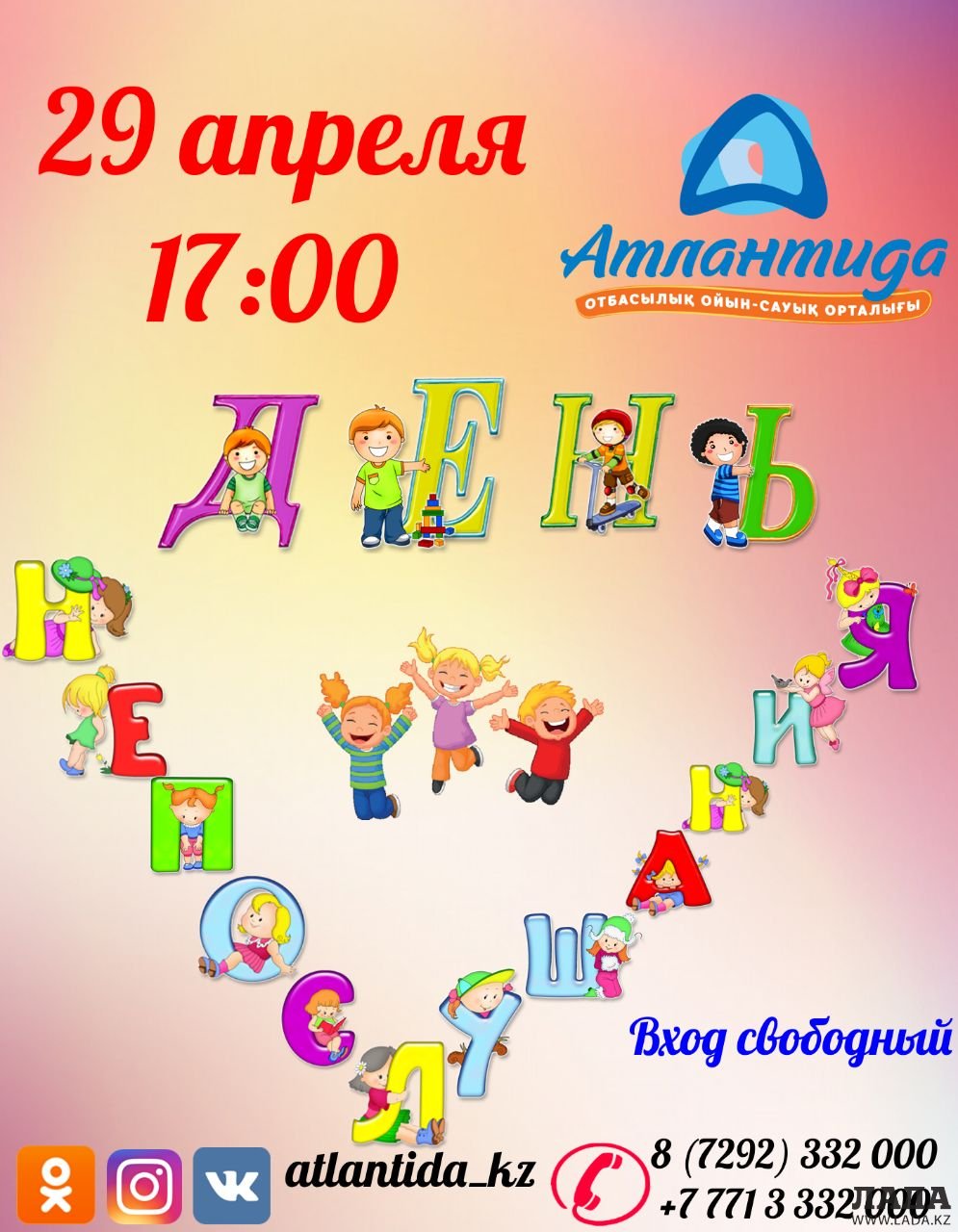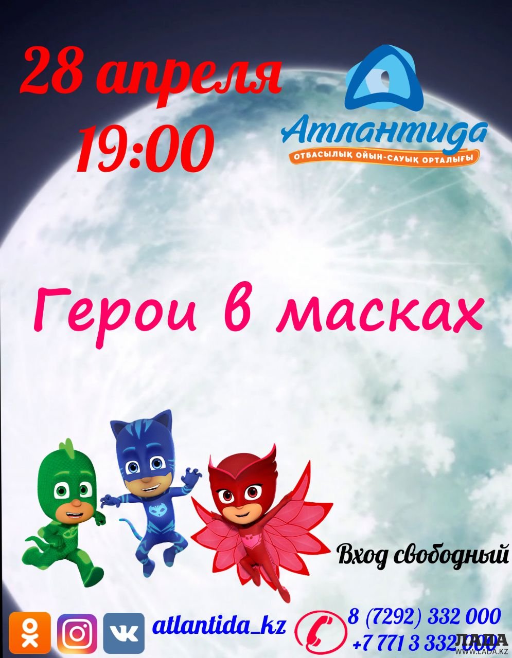В семейном развлекательном центре «Атлантида» еженедельно в субботу и воскресенье проходят зажигательные шоу-программы с участием веселых аниматоров. Отличное времяпрепровождение для всей семьи. Место проведения: семейный развлекательный центр «Атлантида», расположенный на четвертом этаже универсального торгового центра «Заман». Вход бесплатный.
