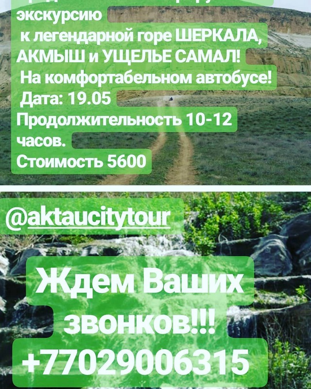 ТОО «Турист» приглашает жителей Актау 20 мая на экскурсию! Поездка платная. Предварительная запись по телефонам: 43-00-00, 31-56-31, 8 707 980 0104.