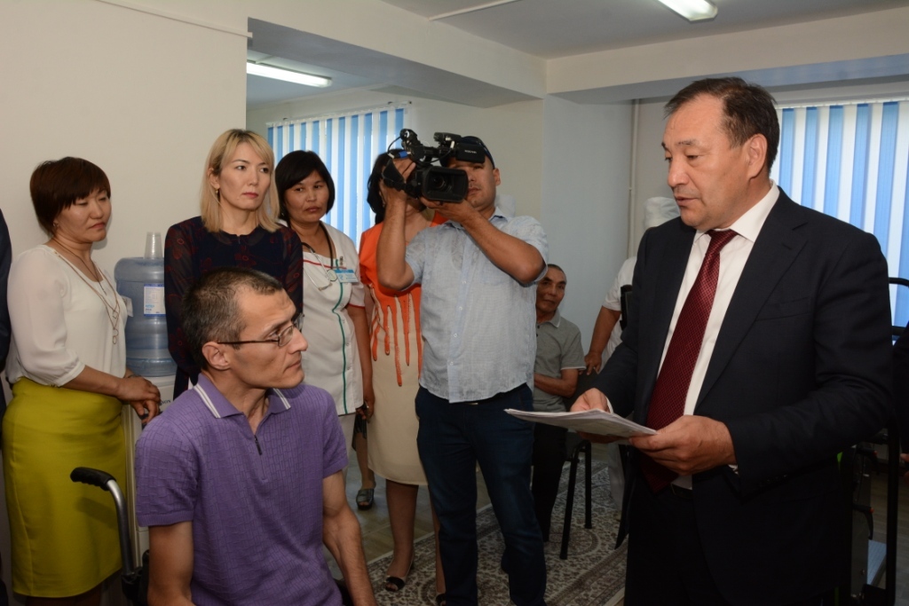 Глава региона Ералы Тугжанов осмотрел помещения центра, где проводится реабилитация инвалидов.