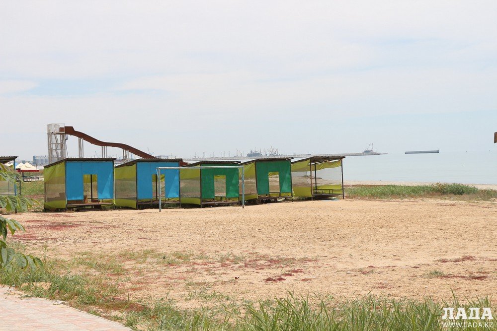 Пляж напротив поселка Приморский, в народе называемый «солдатским», остается свободной зоной. На территории есть бесплатная парковка. В этом году на пляже можно отдохнуть с удобствами, в аренду можно взять лежаки с зонтом по 500 тенге. На территории пляжа имеется бесплатная раздевалка и туалет по 50 тенге. Также имеются летнее кафе и спасательная вышка.